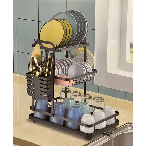 Сушилка для посуды настольная с отводом воды трехуровневая с антикоррозийным покрытием ( белая )