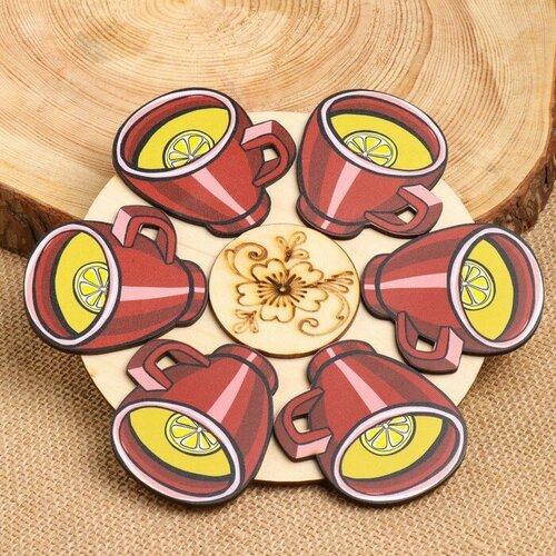 Подставка под горячее "Бордовая кружка", 20х20 см, микс дерева