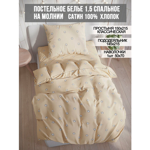 Постельное белье Milky Garden "котики (компаньон)" 1,5-сп, сатин, хлопок 100%, наволочка 1шт, простынь классическая