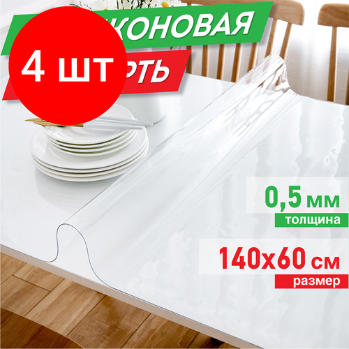 Комплект 4 шт, Коврик-подкладка, скатерть ПВХ прозрачная, гибкое/мягкое стекло, 140х60 см, 0.5 мм, DASWERK, 607880
