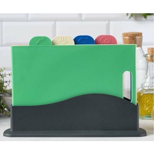Набор разделочных досок на подставке, Цветные / Разделочные доски с подставкой, набор 4 шт