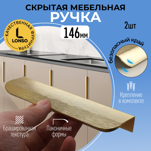Ручка мебельная торцевая скрытая накладная шлифованное золото 146 мм 2 шт