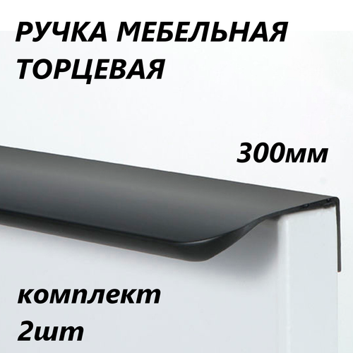 Ручка мебельная анодированная чёрная матовая накладная торцевая 300 мм (30 см) 2 шт