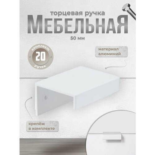 Ручка мебельная торцевая 50 мм Inred IN.01.1140.32/50. WTA матовый, комплект 20 шт, ручка для шкафов, ящиков, комодов, для кухонного гарнитура, фурнитура для мебели
