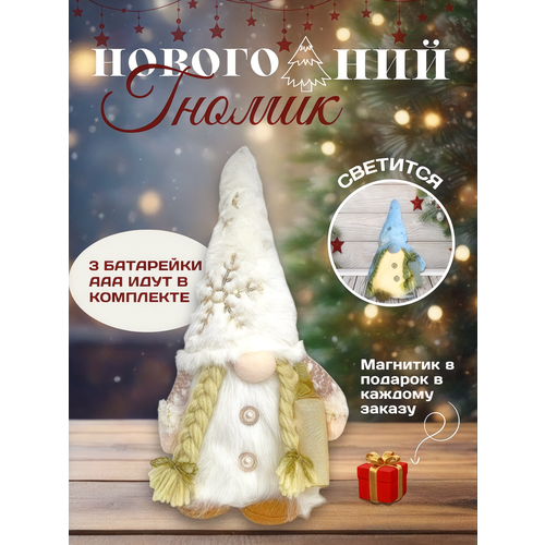 Новогодний декор "Скандинавский рождественский гном" с подсветкой, фигурка под елку, украшение для дома на новый год