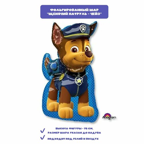 Щенячий патруль. Шар - фигура гонщик чейз, фольгированный - 1 шт. в упаковке, 78 см.
