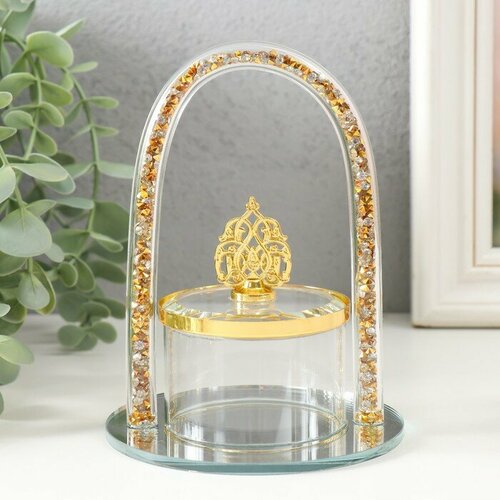 Шкатулка стекло "Арка с золотыми камешками на пьедестале" прозрачная 10*10*13,5 см 9702840