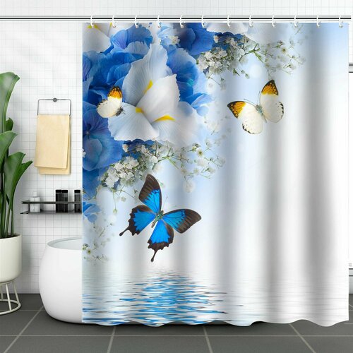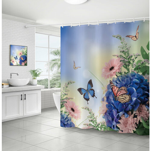 Штора (занавеска) для ванной / душа водоотталкивающая тканевая с кольцами 180 x 180 см Бабочки 9