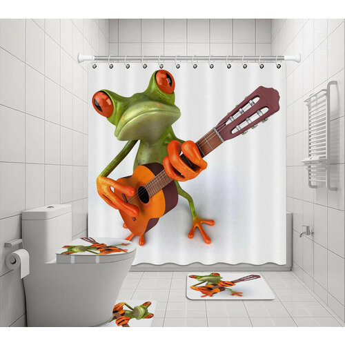 Штора (занавеска) для ванной / душа водоотталкивающая тканевая с кольцами 180 x 180 см Лягушка с гитарой