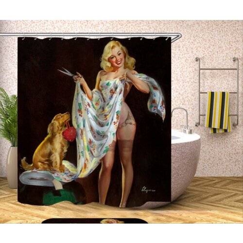 Штора для ванной / душа водоотталкивающая, текстильная с кольцами, 180 x 180 см Девушка 1