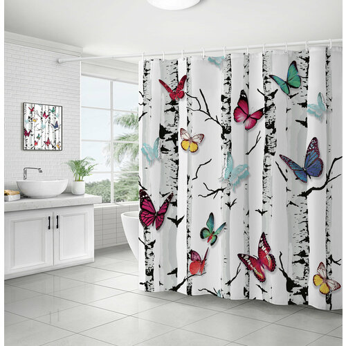 Штора (занавеска) для ванной / душа водоотталкивающая тканевая с кольцами 180 x 180 см Бабочки 6