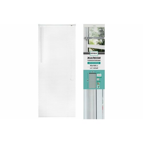 Жалюзи горизонтальные BRABIX 45*160 см, алюминий, цвет белый, 608623