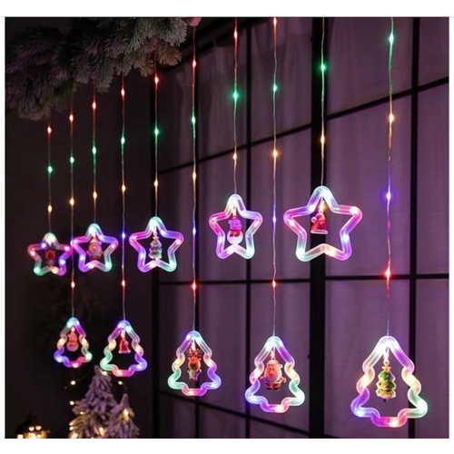 Гирлянда занавес с фигурками светодиодная /Декоративная гирлянда c пультом управления 3M 10 фигур/ Звезда