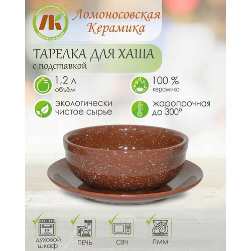 Тарелка для хаша с подставкой 1,2л "Мрамор" d19см, керамика