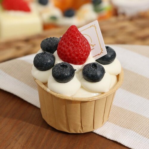 Муляж - магнит Маффин с клубникой 6х6х8см