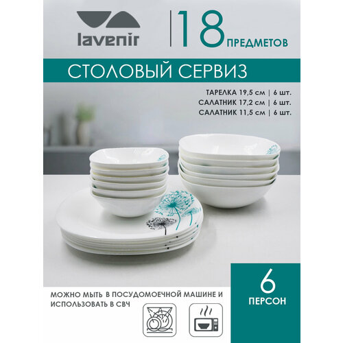 стеклокерамикаСтоловый сервиз бренда Lavenir изготовлен из высококачественного ударопрочного опалового стекла. Черно-белые тарелки и салатники имеют классический дизайн и сочетаются между собой по форме и цвету. На сервизе редко появляются царапины, тарелки устойчивы к внешним механическим повреждениям и перепадам температур, их можно использовать в микроволновой печи и мыть в посудомоечной машине. Стекло – твердый и экологически чистый материал, имеет специальное покрытие и абсолютно гладкую поверхность, благодаря которому в пищу не проникают бактерии и посторонние запахи, оно не мутнеет и не выделяет вредные вещества. Модный сервиз универсален и будет отлично смотреться как при повседневном использовании, так и на праздничном столе. Рассчитан на 6 персон и состоит из оптимального набора предметов, станет прекрасным подарком близкому человеку, коллеге или родственнику. Приятный, оригинальный набор из стильной посуды подойдет для готовки, станет украшением кухни, столовой или ресторана. Прекрасная замена идеям из Икеа! Ком