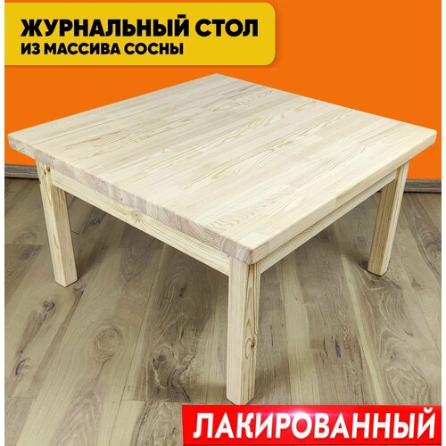 Стол журнальный Классика из массива сосны, квадратная столешница 40 мм, лакированный, 60х60х46 см