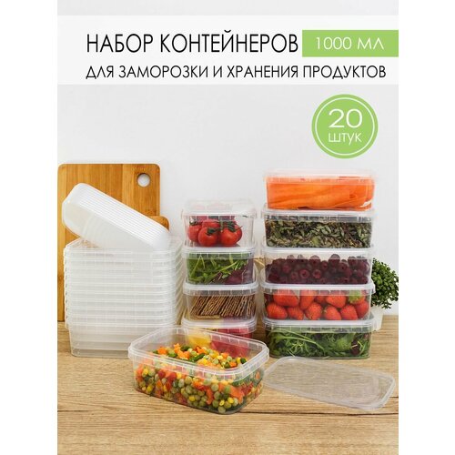 Контейнер для еды и заморозки продуктов 1000 мл, 20 шт.