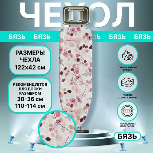 Чехол на гладильную доску 110x30-114x36 см, подкладка - поролон, универсальный, серый, 122х42 см, Розовый эвкалипт
