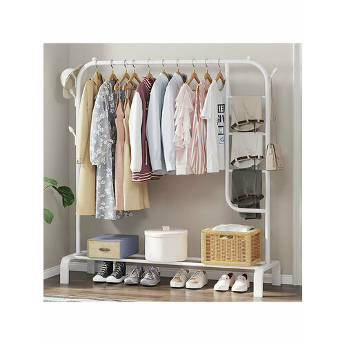 Вешалка для одежды и обуви, напольная металлическая, стеллаж с полками, 38 см, белая