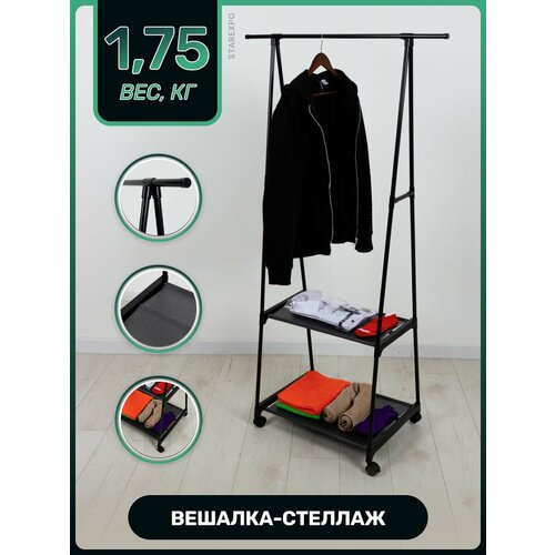 Напольная вешалка Joy Home Giza с 2-мя полками для верхней одежды и обуви черная