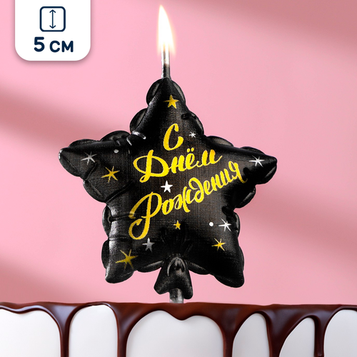 Свеча для торта Звезда, С Днем рождения, черная, 10,5 см