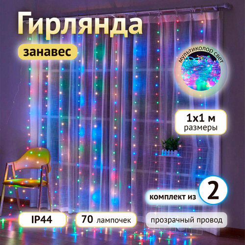 Гирлянда TDM Светодиодный занавес 3.5W 220V 70Led 1x1м IP44 мультиколор (комплект из 2 шт)