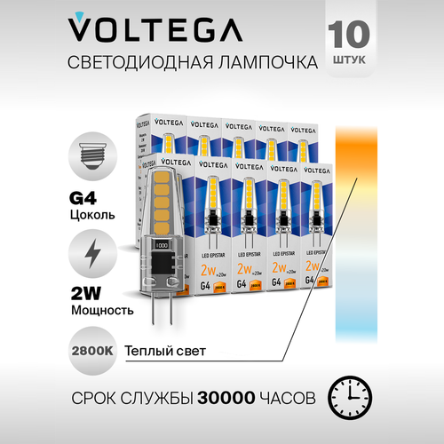 Лампочка светодиодная G4 форма капсульная 2W теплый свет Voltega Simple Capsule 2800K упаковка 10 штук