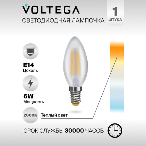 Лампа светодиодная Voltega 7044, E14, C35, 6 Вт, 2800 К