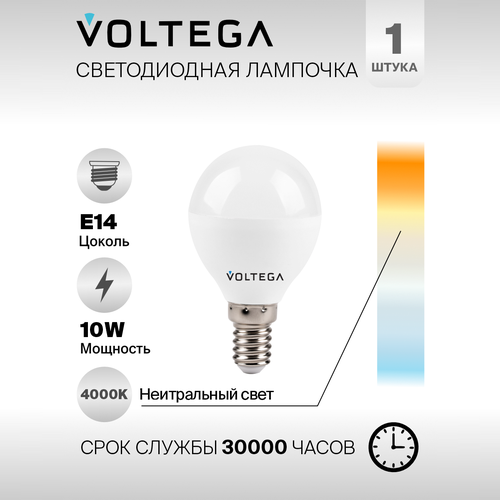 Лампа светодиодная Voltega Simple Globe 8454, E14, G45, 10 Вт, 4000 К
