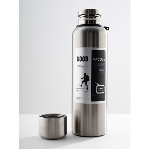 Термос "Intermos" 1,2 л, с широким голом, чашкой, ремнем для переноски, нержавеющая сталь, цвет хром