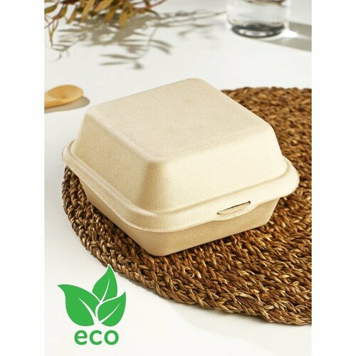 Бургер-бокс, 450 мл, неразъёмная крышка, сахарный тростник(50 шт.)