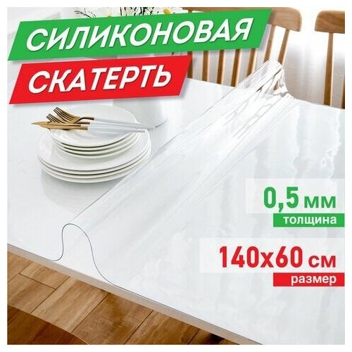 Прозрачная скатерть на стол, Размер 60 см * 140 см, Толщина 0,8 мм (мягкое / жидкое стекло, ПВХ пленка для стола, Силиконовая скатерть).