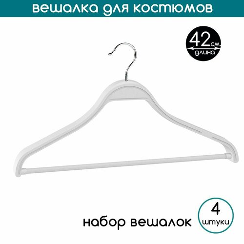 Вешалка-плечики для белая для костюмов с перекладиной PLECHIKOFF, 42 см, набор 4 шт.