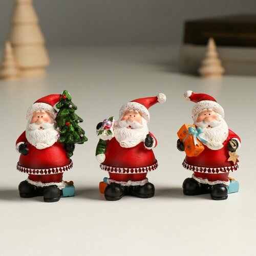 Сувенир полистоун "Дед Мороз в красном наряде с подарком" микс 6,5х5х4 см