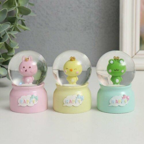 Сувенир полистоун водяной шар свет "Счастливая зверюшка" микс 4х4х6,7 см