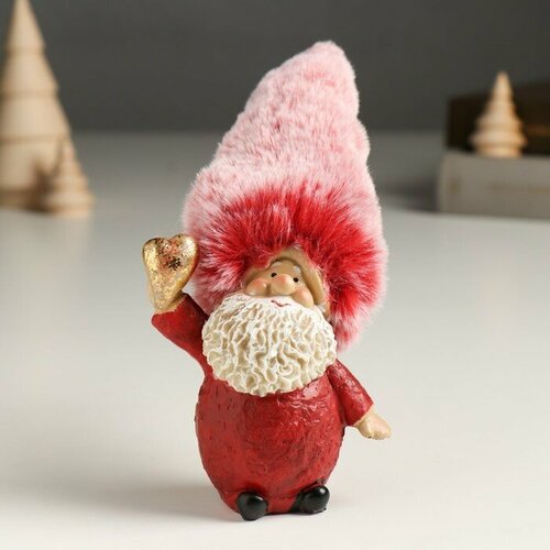 Сувенир полистоун "Дедушка Мороз в красном наряде и меховом колпаке, с сердцем" 6х4х17 см