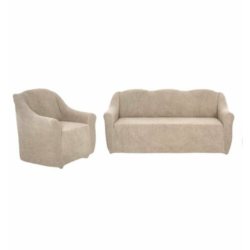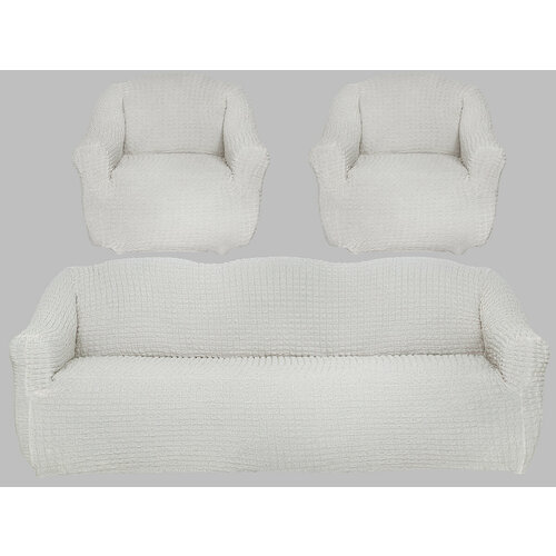 Чехол на трехместный диван и кресла без оборки Venera, цвет Слоновая кость