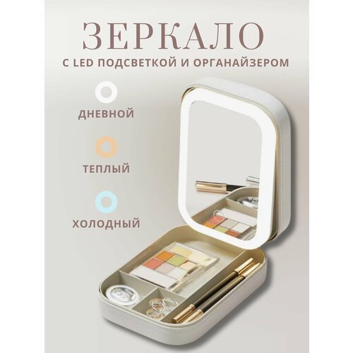 Зеркало-шкатулка с подсветкой для макияжа, зеркало с органайзером