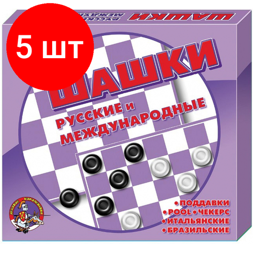 Комплект 5 наб, Настольная игра Шашки русские и международные малые арт.00105