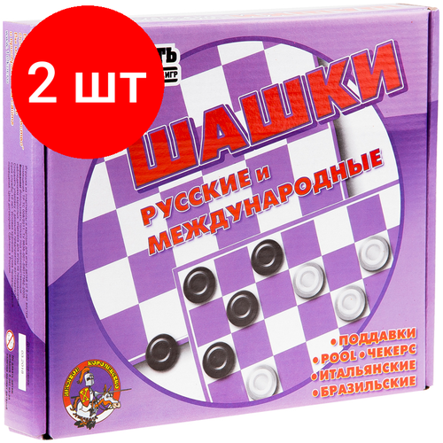 Комплект 2 шт, Шашки Десятое королевство "Русские и международные", пластиковые, малые, картонная коробка