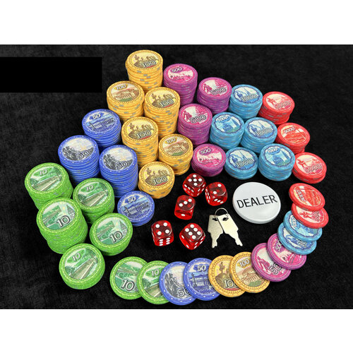 Набор для покера Российские Рубли, 500 керамических фишек с номиналом