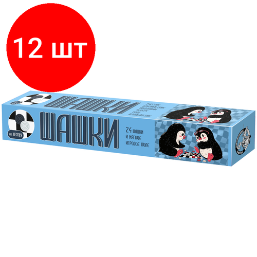 Комплект 12 шт, Шашки Десятое королевство с мягким полем, картонная коробка