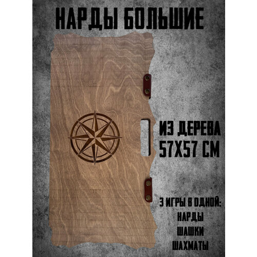 Нарды деревянные большие 60х60, 3в1 с шахматами и шашками Роза ветров
