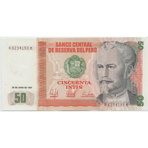 Перу 50 инти 1987 г /министр финансов Николас де Пьерола/ UNC
