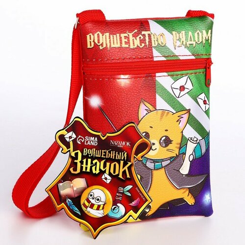 Подарочный набор детский «Волшебство рядом», сумка, значок, цвет красный (комплект из 9 шт)