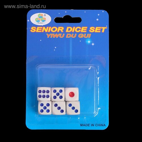 Набор игральных костей, 6 шт, 1.3 х 1.3 см