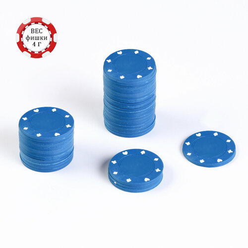 Набор фишек 50 шт, без номинала, фишка 4 г, синие
