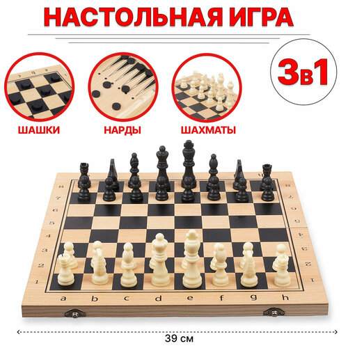 Настольная игра 3 в 1 шахматы, шашки, нарды 39х39 см (W7784)