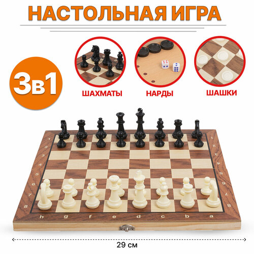 Настольная игра 3 в 1 шахматы, шашки, нарды 29х29 см (W7782)